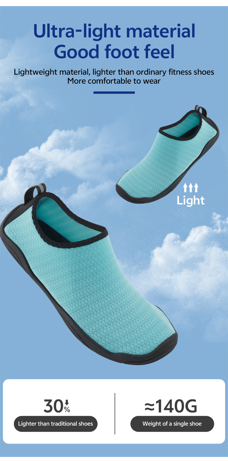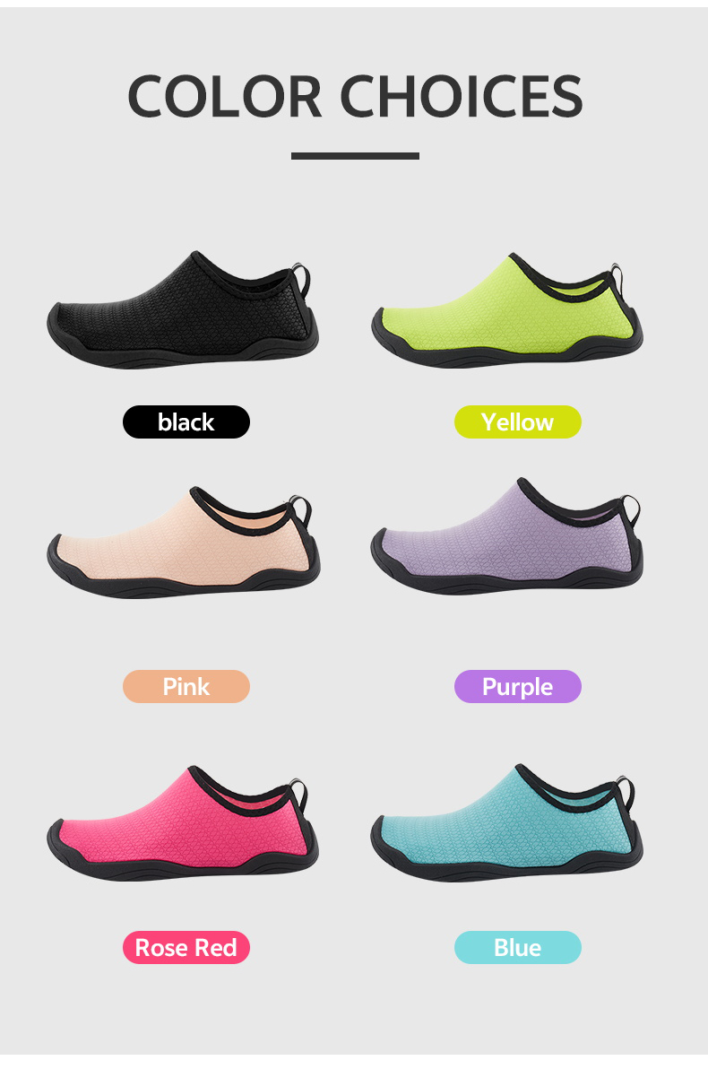 Lightweight and Soft: Beach shoes are generally lighter and softer than sandals, with a wide, roomy design and a flat sole that is less likely to injure the feet, making them suitable for simple, light summer activities.