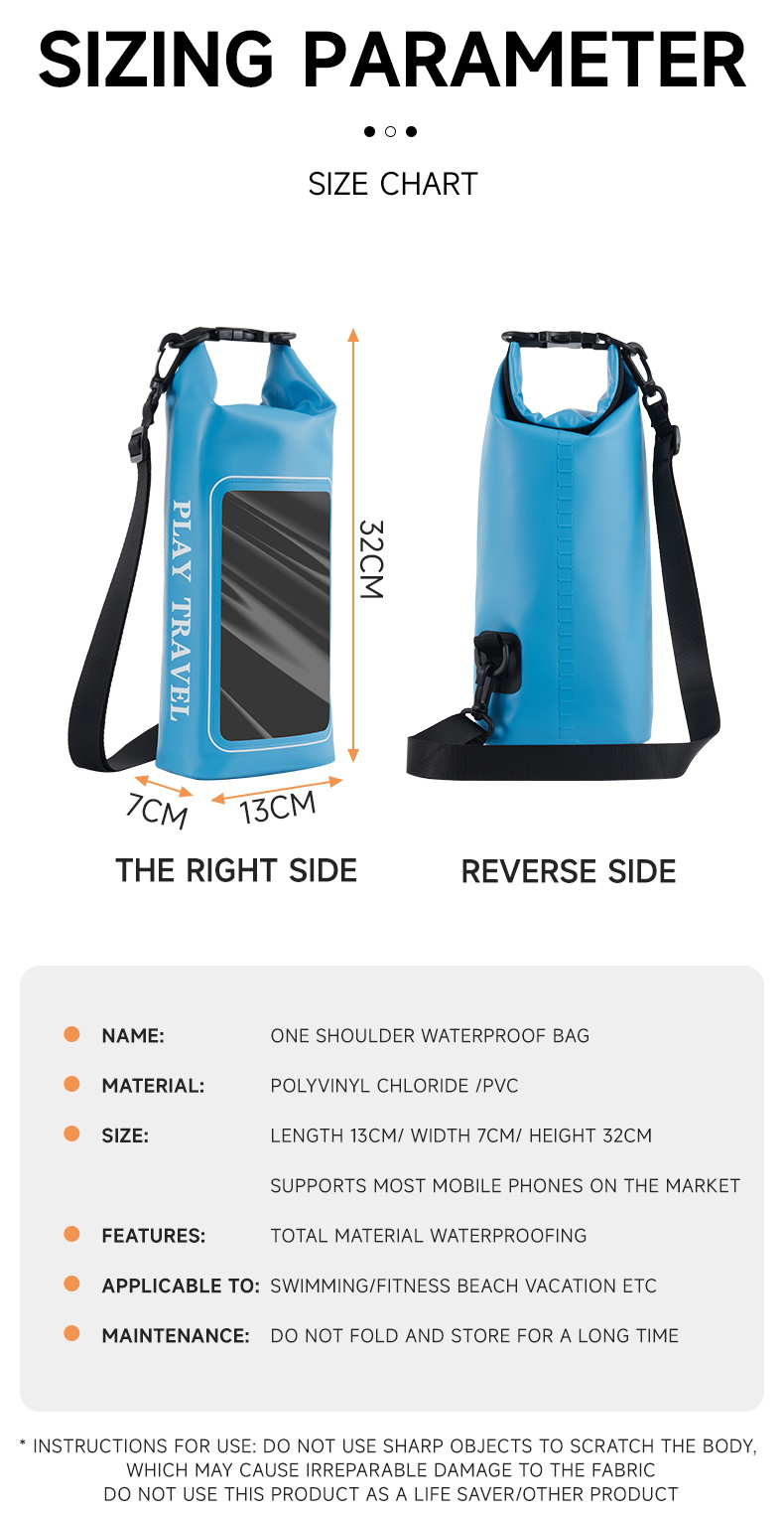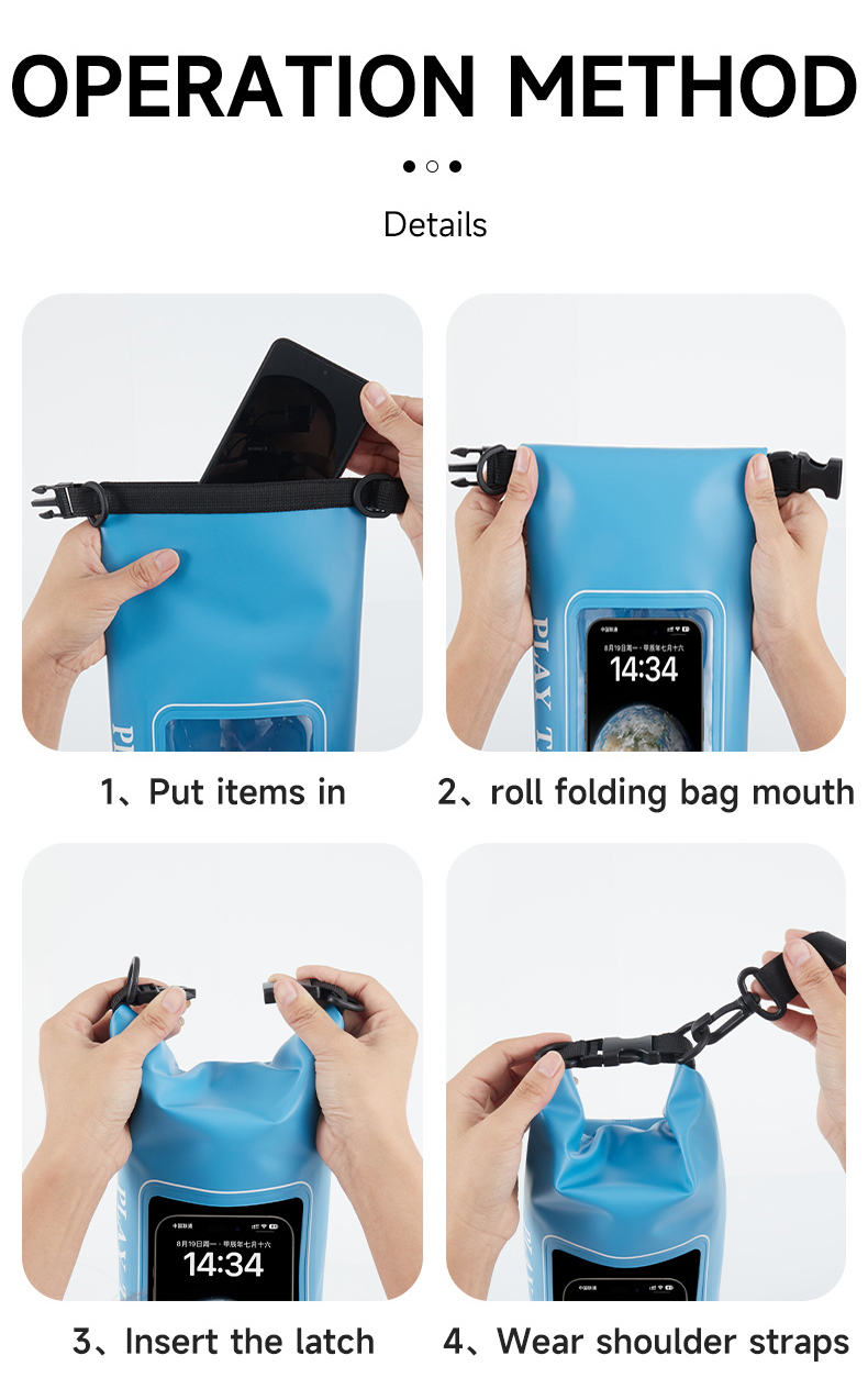 Some have buoyancy: Some waterproof dry bags have a certain degree of buoyancy when not fully loaded. Even if accidentally dropped into the water, they can float on the surface, making them easy to retrieve.