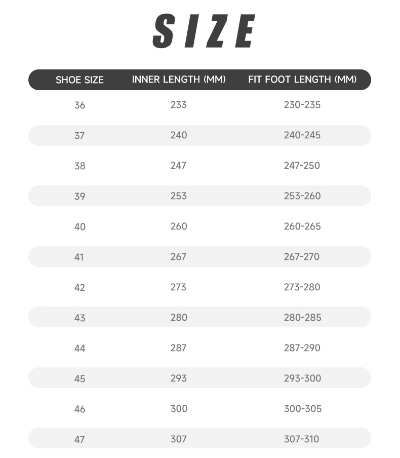 Size:36#(233mm)-37#(240mm)-38#(247mm)-39#(253mm)-40#(260mm)-41#(267mm)-42#(273mm)-43#(280mm)-44#(287mm)-45#(293mm)-46#(300mm)-47# (307mm)