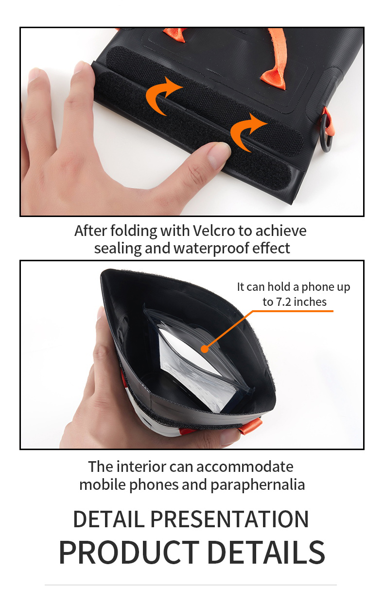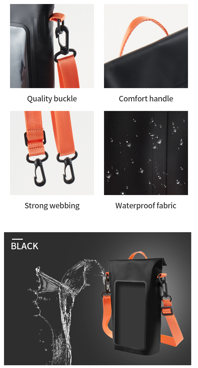 Waterproof and moisture-proof: This is the core function of a waterproof bag, effectively protecting items inside, such as mobile phones, wallets, documents, and electronic products, from water damage, allowing users to use them with peace of mind in various wet environments.
