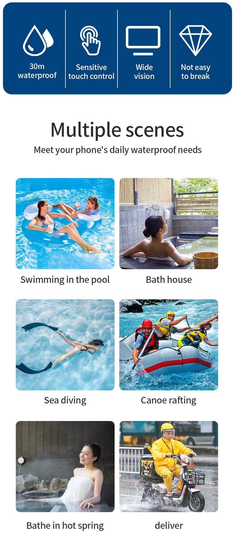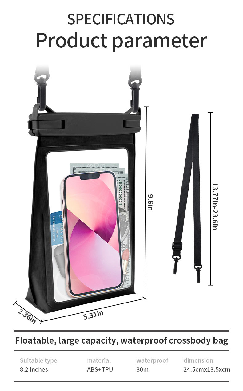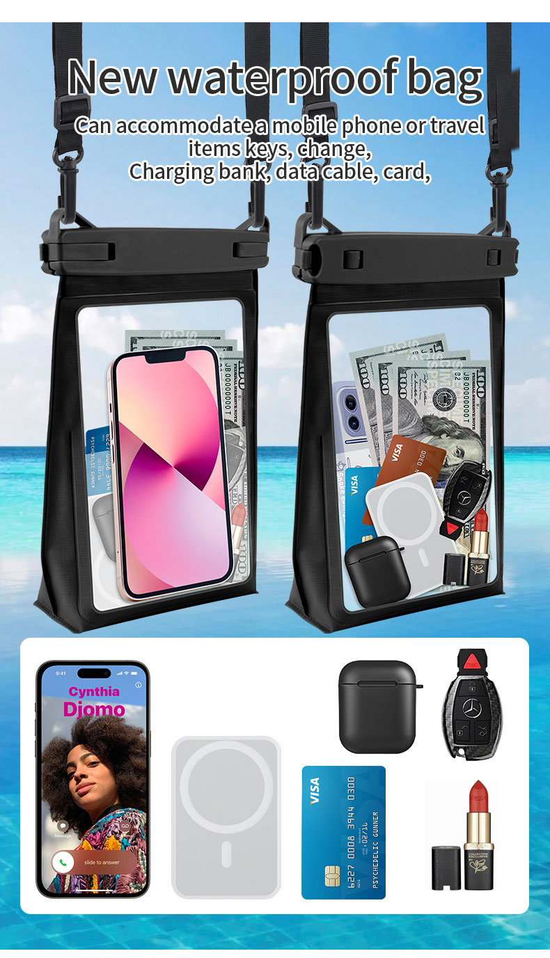 The cross-body waterproof phone bag breaks the limitations of traditional waterproof bags (lack of portability) and ordinary cross-body bags (weak protection), becoming a versatile travel essential with its triple advantages of "cross-body wear + robust waterproofing + scientific storage." It acts like a personal safety shield, protecting against water, dust, and oil stains, while completely freeing your hands, making every trip effortless and comfortable, combining practicality, comfort, and aesthetics.