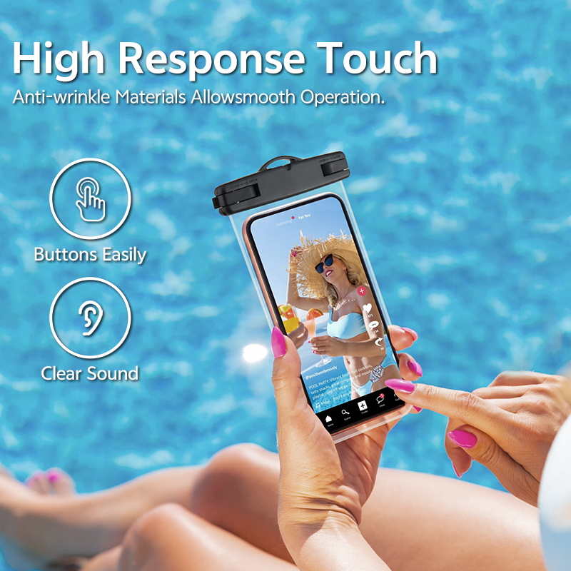 Factory Price Hot Selling Clear Waterproof Phone Pouch, Touchscreen Sensitive Dry Bag with Lanyard for Swimming Snorkeling, OEM/ODM Support.
