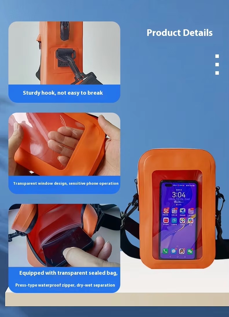 The core function of a waterproof bag is to effectively protect items inside, such as mobile phones, wallets, documents, and electronic products, from water damage, allowing users to use them with peace of mind in various wet environments.